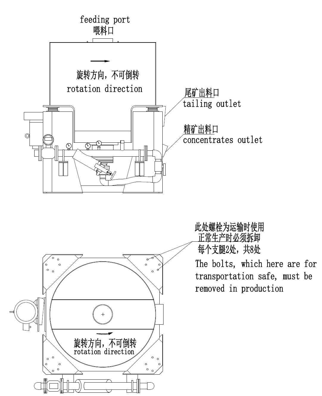 备注:1、自动排矿:设备在停机排出富集好的精矿时无需人工去清洗,而是设备自带清洗功能。2、设备工作还是属于间歇式,每次排精矿时间由现场工人控制。