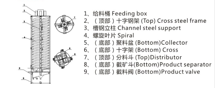 螺旋溜槽是常用的重力选矿设备,适用于分选粒度0.6-0.05mm(特殊情况下可以分选<2mm)细料的铁矿、钛铁矿、铬铁矿、硫铁矿、钨矿、锡矿、钽铌矿、砂金矿、锆英石、金红石、独居石、磷乙矿以及具有比重差异的其它有色金属、稀有金属和非金属矿物。