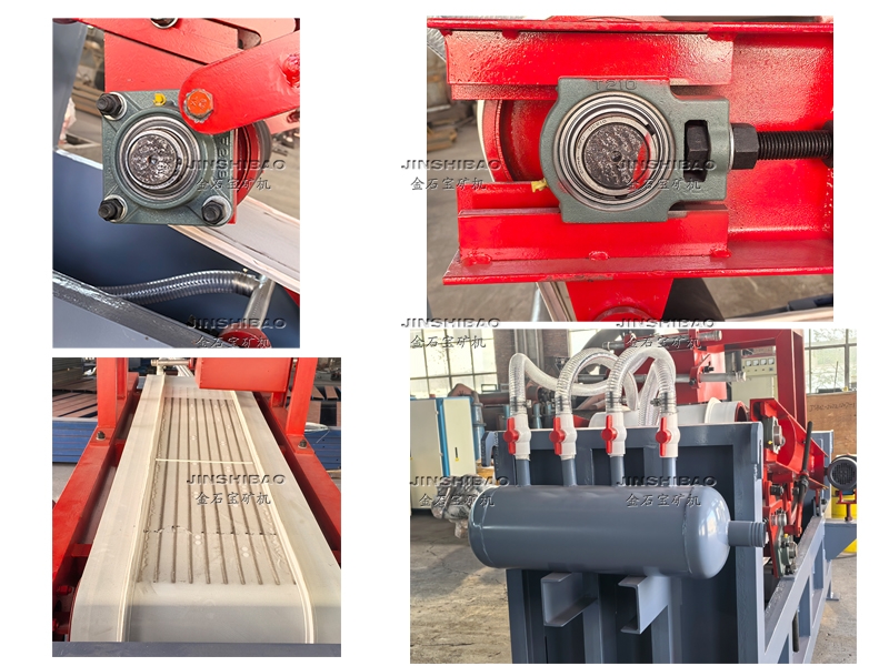 平板磁选机,采用带式分选结构,在整个工作区域从进料到出料物料在皮带的带动下,可对物料进行多次磁搅拌,同时在水流的冲洗作用下,把不含磁的尾矿除去,带有磁性的矿物被皮带输送到板选机的脱磁区,从而将带有磁性的矿物通过脱磁装置脱掉,来完成选矿的过程,整机功率小、处理大,磁场强度高,并达到很好的品质,能够获得更大的效益。