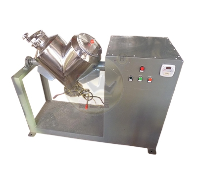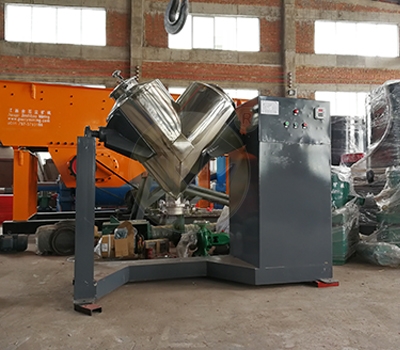 当混料筒转动时,物料在筒内从分解到组合。由于V型筒体内壁是非常复杂的曲面,使得物流的旋转轨迹无规律。加上物料在筒内运转时产生的纵向流动。这种纵横交叉复杂的流动,使物料获得了充分的混合效果。